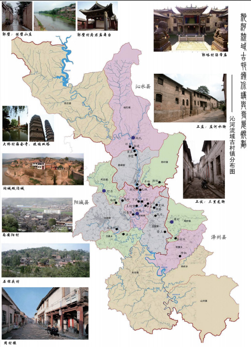 規(guī)劃從宏觀、中觀、微觀三個(gè)層次出發(fā),采用整體保護(hù)、集群保護(hù)和特色保護(hù)的理念,建立統(tǒng)籌發(fā)展、協(xié)作發(fā)展區(qū)域一體化發(fā)展路徑。整體保護(hù):不僅要突出村落個(gè)體特色,更要體現(xiàn)沁河流域古村鎮(zhèn)的整體風(fēng)貌,使得分散的古村鎮(zhèn)成為一個(gè)整體,注重整體空間重組。集群保護(hù):解決單個(gè)村鎮(zhèn)各自為政、無(wú)序競(jìng)爭(zhēng)和資源浪費(fèi),以及單個(gè)保護(hù)中的文化流失和破壞,積極建立局部協(xié)調(diào)發(fā)展機(jī)制。特色保護(hù):以資源的稀缺性和典型性為條件,進(jìn)行特色的保護(hù)與強(qiáng)化,避免保護(hù)修復(fù)過(guò)程中古村鎮(zhèn)之間景觀的相互復(fù)制,要注重特色的營(yíng)造,積極培育旅游增長(zhǎng)極。