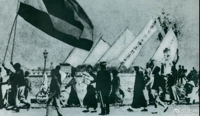 1919年5月4日,北京爆發(fā)學(xué)生反帝愛(ài)國(guó)運(yùn)動(dòng)。這是北京大學(xué)學(xué)生的示威游行隊(duì)伍。